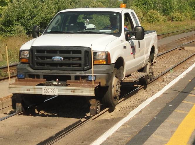 I then walked back to the VIA station and waited. I had over an hour before train #65 was scheduled to depart. While I was waiting, I photographed an eastbound CN freight and a hi-rail truck.