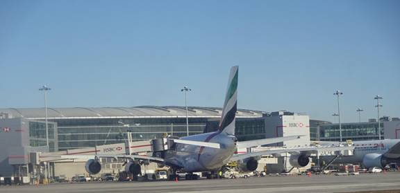 The plane left a few minutes early. As we taxied out to the runway I attempted to photograph some planes as we went past. One of the planes was an Airbus A380.