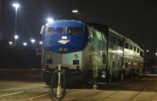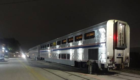 two Superliner coaches, and P42 #156 which is painted in Amtrak’s Phase 1