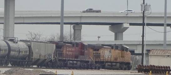 Austin, we passed a Union Pacific freight train with four locomotives. We were