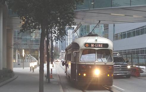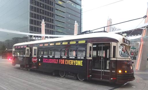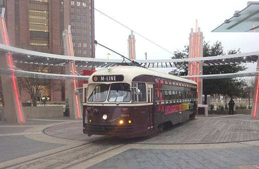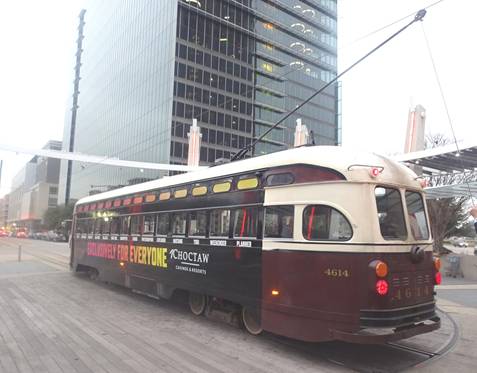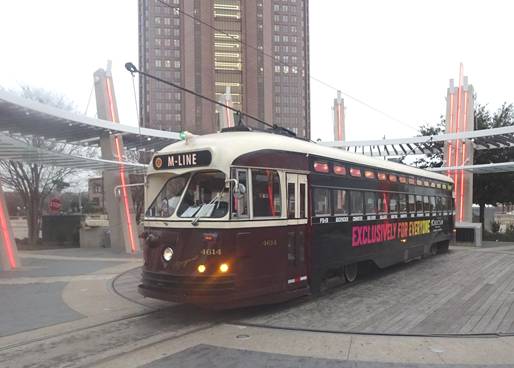Once I got to my room I went online and dropped my stuff off. I looked on the McKinney Avenue Transit Authority’s website and checked the tracker to see if #4614 was running. It was! It was at the far end of the line.