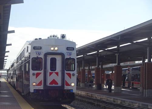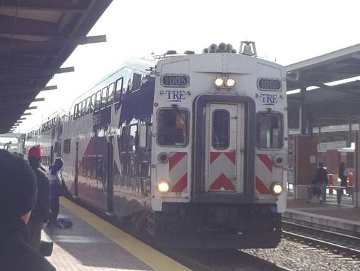 filmed the train departing. The TRE train was at the station. I boarded the cab