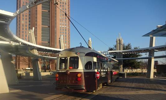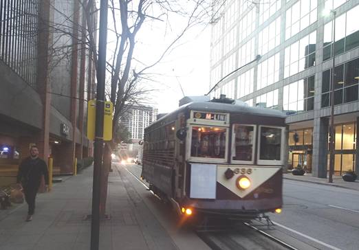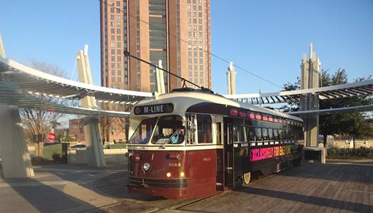 I got to Bishops Arts, there was a streetcar there. I photographed streetcar