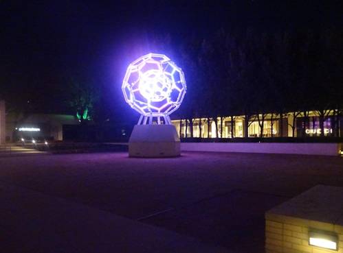 an outdoor area which a sculpture that lights up at night. I photographed it.