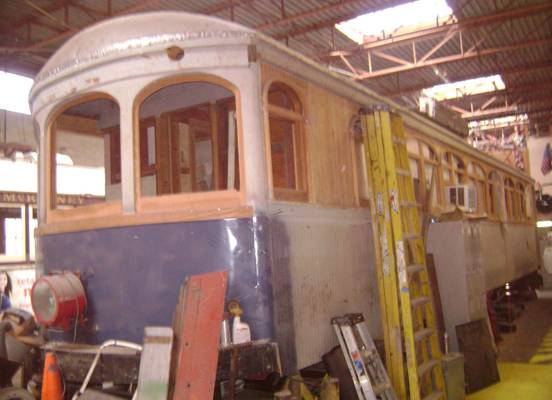 streetcar operation, car 186 was used on a farm to store hay bails until it was