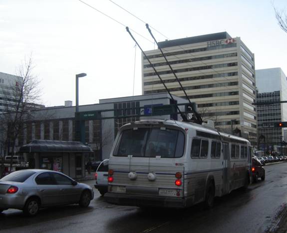 The quickest way to get to the mall on transit was to ride the route 100 express bus. While we were waiting for the bus, we photographed a couple more trolley buses.