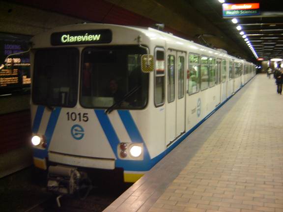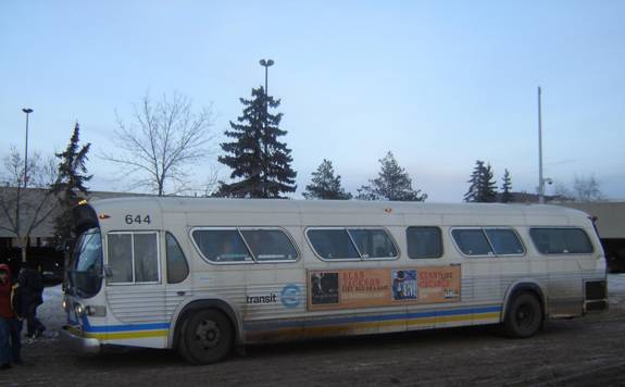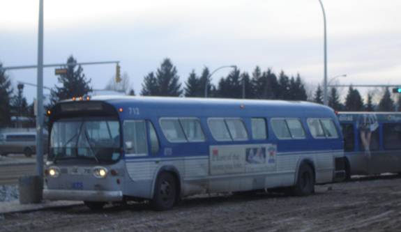 However, Mark and I would not actually ride a GM fishbowl that day. We caught a D40LF on route four, heading to the LRT station. Shortly after the bus left the mall, I photographed another fishbowl. Along the way, we passed construction for another extension of the LRT. However, the plans don’t have the line running to the West Edmonton Mall. If the line did, I’m sure it would have high ridership.