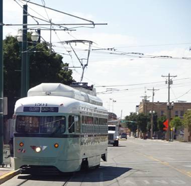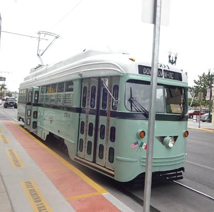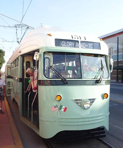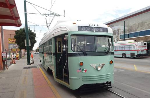 I then walked a block to the streetcar stop close to the U.S-Mexico border and photographed PCC #1515 when it came.