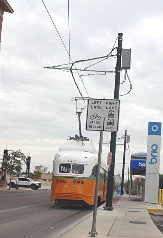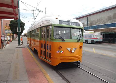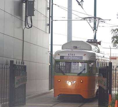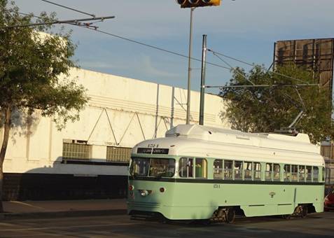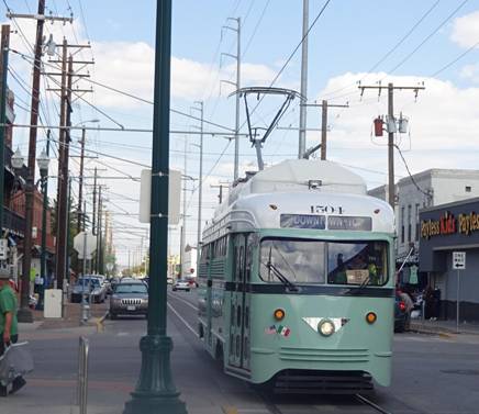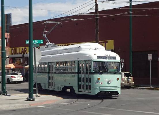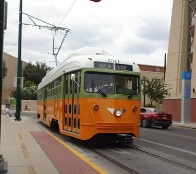 I then checked out of my hotel and walked to the BRIO stop. I bought a day pass and caught a BRIO bus to the terminal next to the car barn. I photographed a Sun Metro NABI bus in the older livery and PCC #1504 as the car went into service.