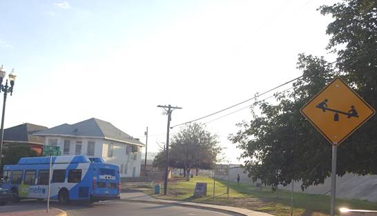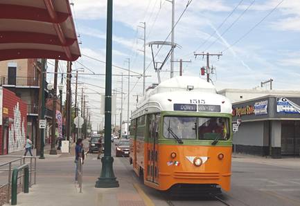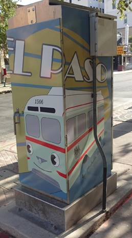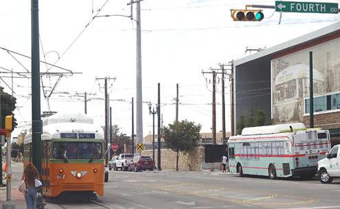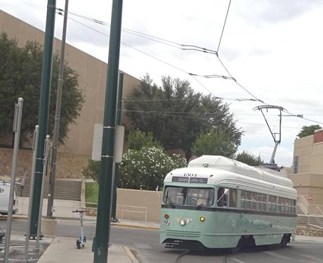 I walked a few blocks. It took some time to find the intersection but I eventually found what I was looking for. I photographed El Paso PCC #1510 in front of a business.