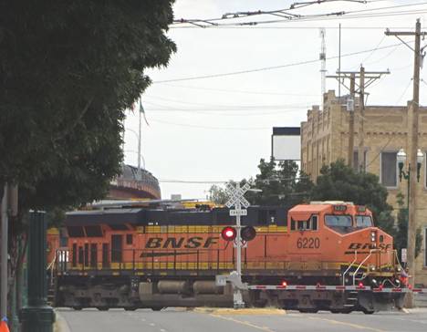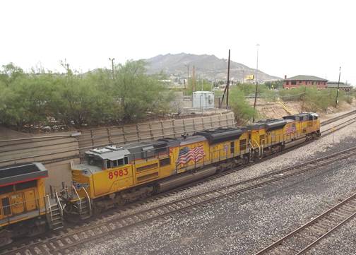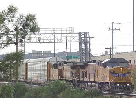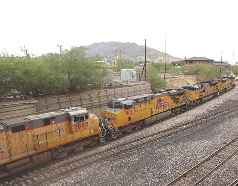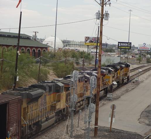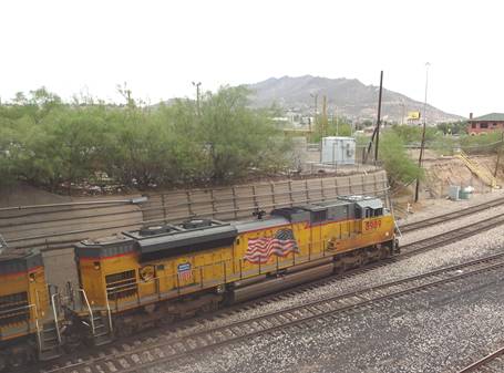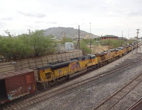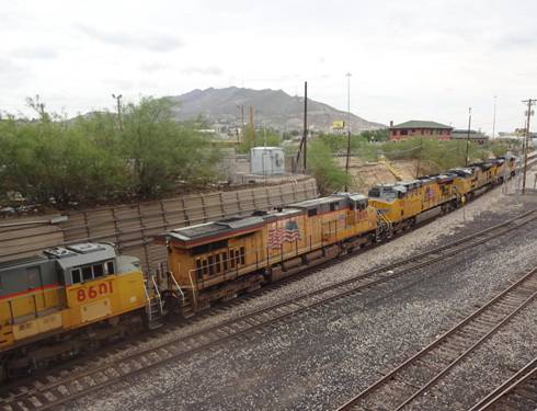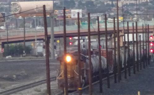 I rode to a street above the El Paso Amtrak station and got off. I attempted to photograph #0414 as it pulled away.