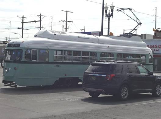 I wasn’t sure if Russ got the message about the change of plans. I saw him on PCC #1514 and waved at him trying to get him to get off. However, he was still on the car. I photographed #1514.