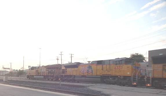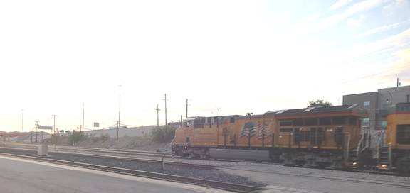 I slowly made my way to my hotel and stopped for dinner. At one point, I photographed a Union Pacific freight in the yard.
