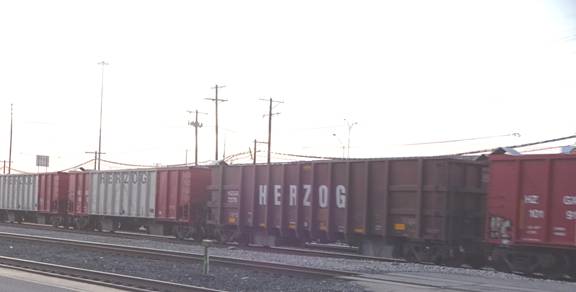 I went outside and photographed a Union Pacific freight train with Herzog hopper cars.