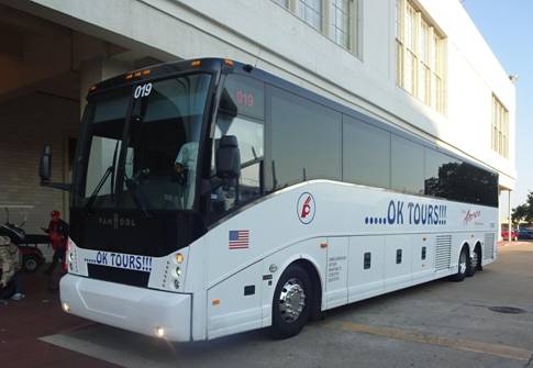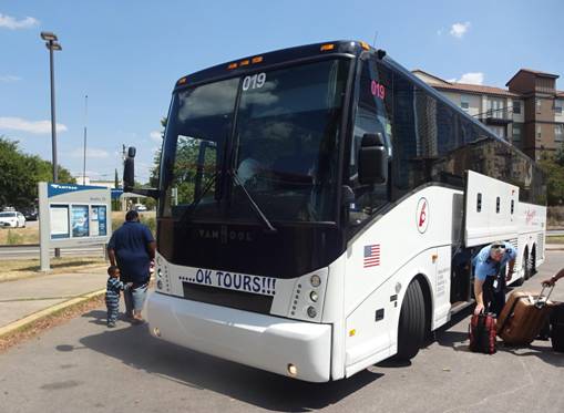 I had heard that Russ was upset to learn that we would be on a bus instead of the train tonight. I ended up going by the Doubletree the ERA was staying at. I saw a chartered highway coach arrive with a sports team getting off. I photographed the bus.