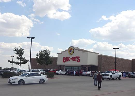Later, we pulled off the highway for lunch. We were at a place called “Buc-Ee’s”. This was a large retailer with a large gas station which had 120 pumps! (Yes, one hundred twenty pumps!) I took some photos.