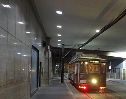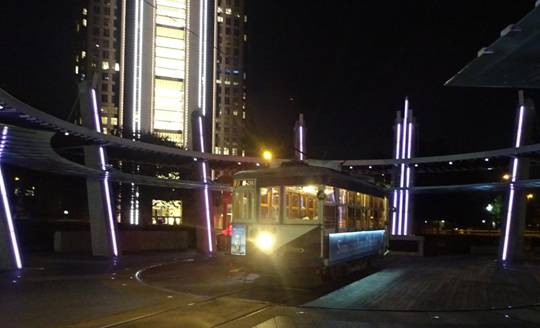 I boarded #1504 and the car departed. I rode to the stop close to my second hotel. I got off and photographed the car.