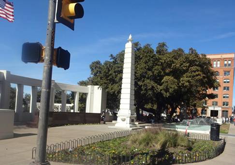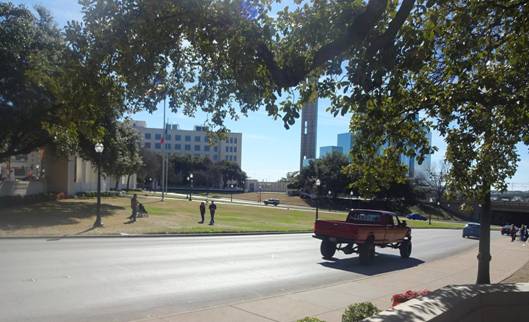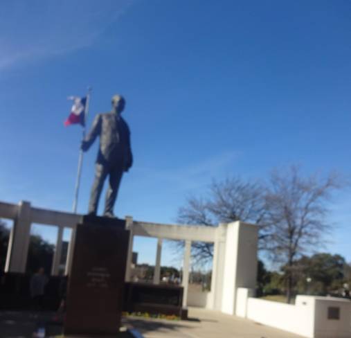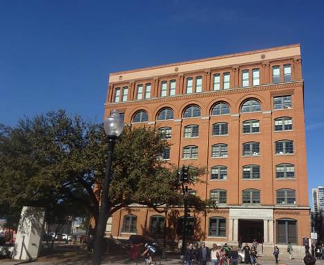 I then took a picture of the Grassy Knoll and a plaque on the Schoolbook Depository where the shooter presumably was.