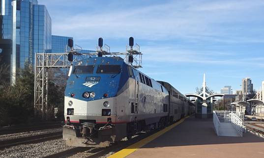 I then walked a few blocks to Taco Bell and had lunch. After lunch I walked back to Cityplace station and boarded a train for Union Station. When I arrived, I saw Amtrak train #22, the Chicago bound Texas Eagle was in the station. I saw that its sleeping car was the last car on the train behind the coaches and not between the transition sleeper and the dining car. I saw a couple other railfans on the platform. We photographed the Texas Eagle.