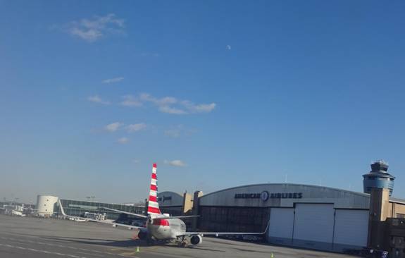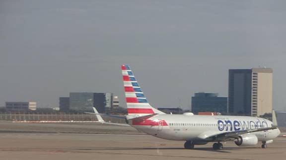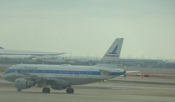 As we taxied out to the runway, I photographed an American Airlines jet behind us.