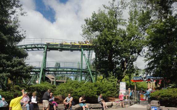 I went back to Freestyle. I once again saw the park's mascot and photographed it with Freestyle's track in the background.