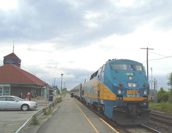 Train #52 was an hour late! I filmed it pulling out. A few minutes later, I filmed a westbound AMT commuter train pulling in.