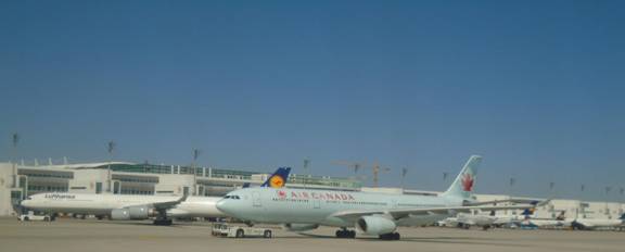 This time, I had a window seat. The plane departed on time and was able to front out of the lot. I photographed various planes as we taxied towards the runway including an Air Canada 767-300.