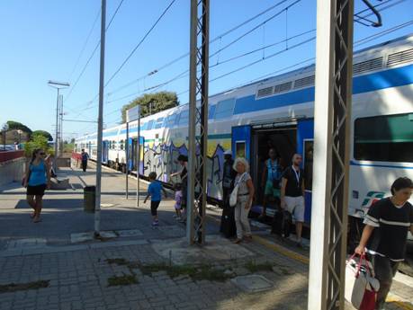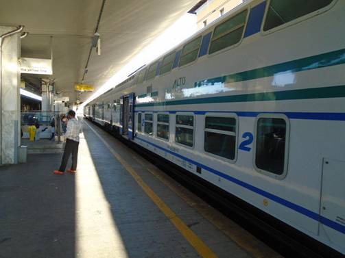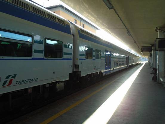 The trains I would be riding are operated by Trentalia. They run regionals and high speed trains. I would be on regionals. The Regionals run in push-pull mode and have both Bi-level and single level coaches. My train to Castagneto would have bi-level coaches.