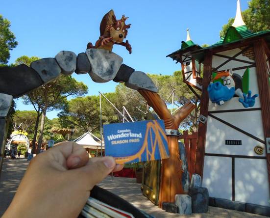 Meanwhile, it was getting close to 2:00 pm and I made my way back to Freestyle. There was a crowd by the gate. Shortly after 2:00 pm, a park employee unlocked the gates and people made their way to Freestyle. I stopped to take another artistic photo with my Wonderland Seasons pass.
