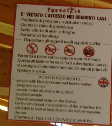 I decided to go on Freestyle a second time. The line was longer, but I didn't have to wait too long. The second ride was kinda rough; much like it was back at Wonderland. The first time at Cavallino Matto wasn't bad for some reason. After the second ride, I photographed the train at the top of the lift hill.