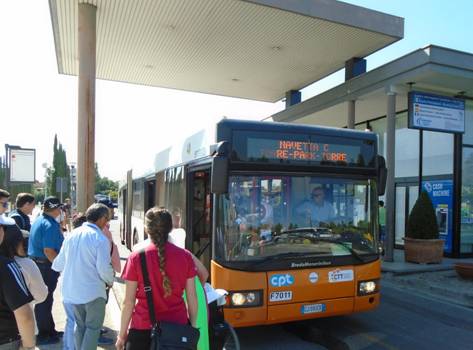 I was expecting to go through customs, but I didn't. I just emerged into the arrivals area. I bought a bus ticket into Pisa. There's a shuttle train which is down until December of this year.