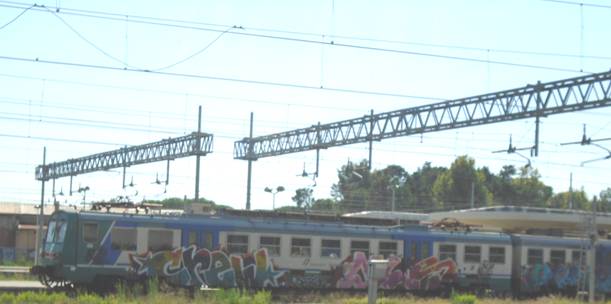 Between Livirono and Pisa, I noticed the train took another route into Pisa; it seemed to loop around before pulling into Pisa in the direction the train to Castagneto departed in. I got off and photographed the train.