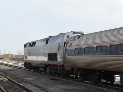 outside of Cleveland. Amtrak train