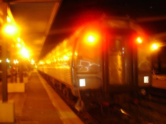 around for an AC outlet to charge my digital camera’s batteries. The train crew