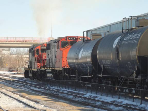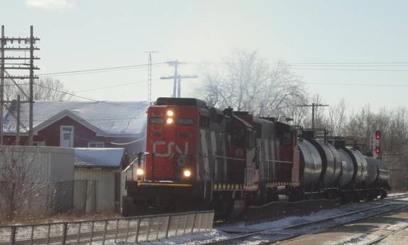 Meanwhile, the CN local I saw earlier was racing past. The GP9 was smoking like an Alco! I photographed it.