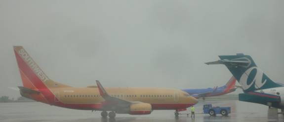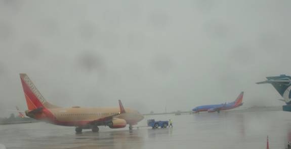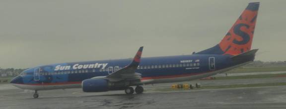 Boarding began a little more than an hour later. The plane departed on time and I photographed a Sun Country Boeing 737.