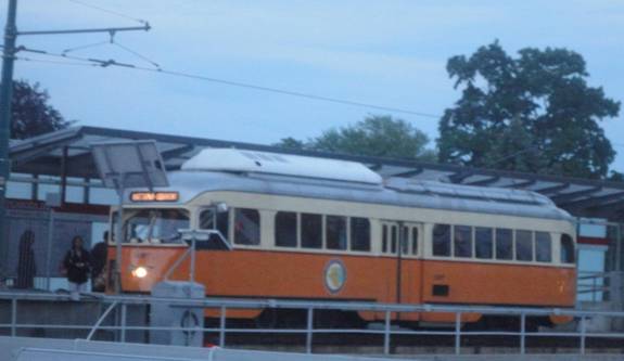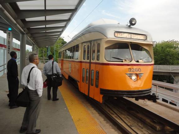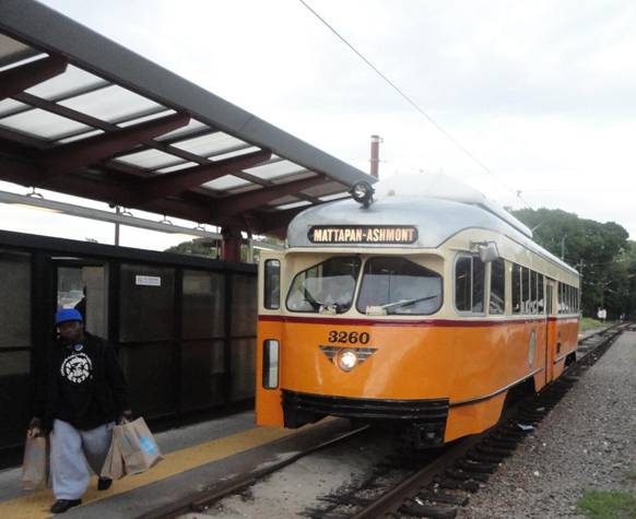 After checking in and dropping off my stuff, I returned to North Station and caught a green line train to Park Street where I caught a red line train east. It was heading for Braintree; where I didn't want to go, so I got off at J.F.K U Mass, where I bought a bottle of Diet Pepsi because I was thirsty. I then took a train to Ashmont. I was going to ride the Mattapan line again. Shortly after I got there, PCC #3260 showed up. I photographed it before I got on.