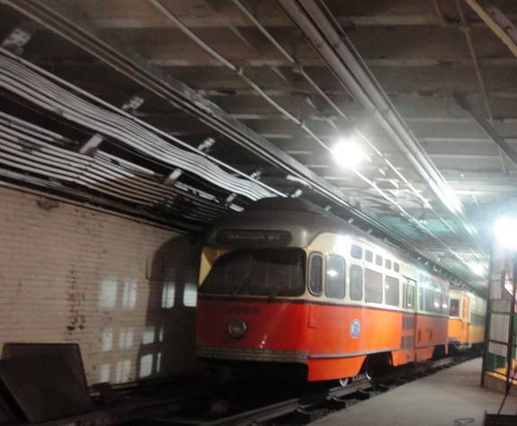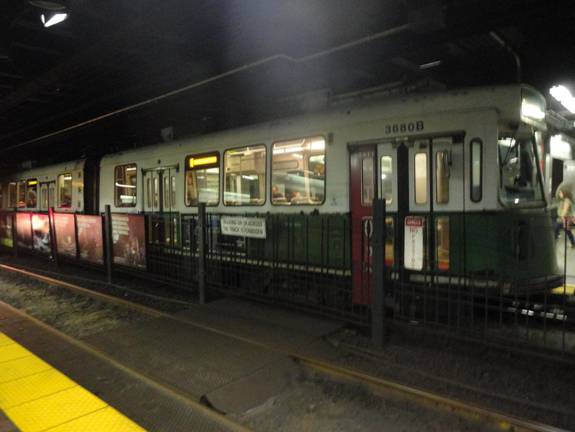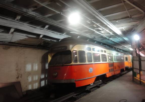 I then transferred to the green line and rode a train to Boylston and filmed the train pulling out. I then went outside. I knew that the Boston bombings happened on Boylston Avenue and wasn't sure if this was where it happened. I then went back into the station and photographed the historic cars on display.