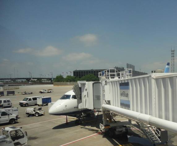 I then phoned for a taxi which took me to Buffalo's airport. I checked in and dropped off my suitcase. I then cleared security. I logged into the airport's Wi-Fi and played Plants vs. Zombies until my plane arrived. I photographed it before I got on.