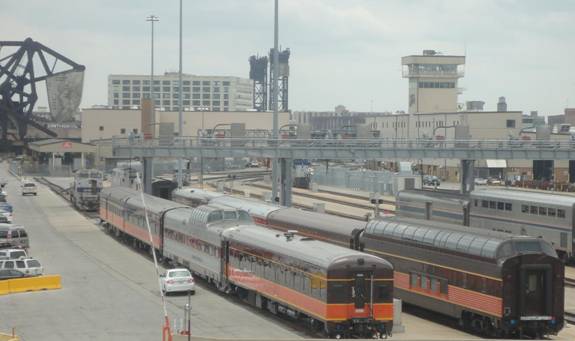I went into a CVS Pharmacy for a few minutes before I walked back to Roosevelt. Along the way, I photographed a Heritage dining car which was an ex CB&Q diner.