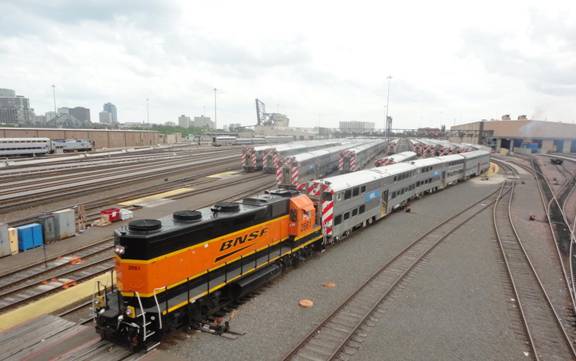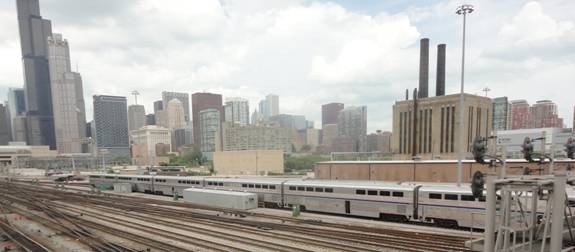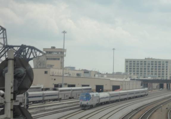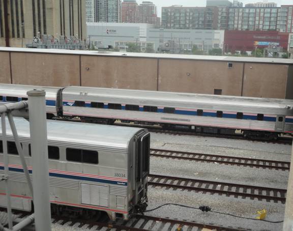 I then boarded the cab car and took a seat on the upper level on the right hand side of the train. When we departed, I filmed the Empire Builder. I then changed my camera's battery. As we passed the Metra yard, I filmed it. I was able to see the last two F40C locomotives.