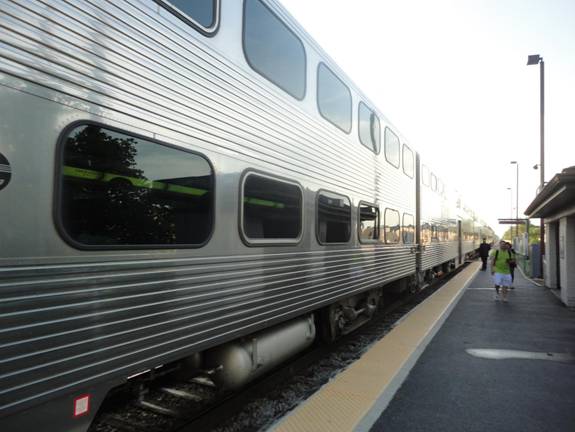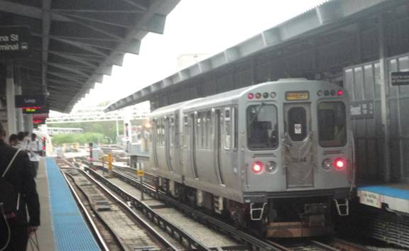 I got up and got dressed. I went downstairs for breakfast. After breakfast, I went back to my room and worked on this report some more. I then went to the front desk and asked if there was a shuttle. I was told there was a shuttle that could take me anywhere within a 5 mile radius. The El was more than 5 miles from the hotel, but it could take me to a Metra station. However, it would be a tight connection to the train when the shuttle got there. On the way to the Metra station, I caught a glimpse of a 2200 series El car on a flatbed trailer! Unfortunately, I was unable to photograph it. Most likely, the car was heading for scrap. The Illinois Railway Museum plans to acquire a set of 2200s and a set of 2400s, but that car was going the wrong way from IRM which is why I'm convinced it was going for scrap.
