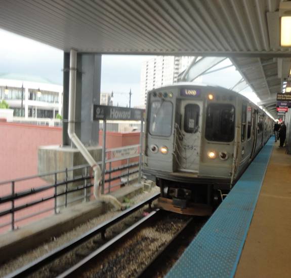 It started to rain so I got back on the Skokie line and rode back to Howard. I photographed some trains including the purple line train that would run express downtown.