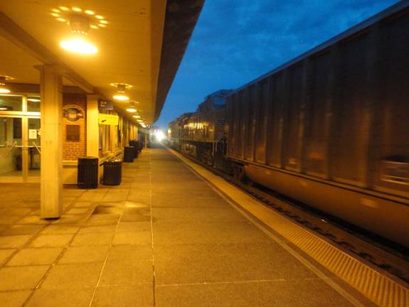I went to the cafe car for lunch. I ate my lunch at my seat. The train stopped at Buffalo Exchange Street. We soon departed. I readied my stuff in preparation to get off at Buffalo Depew.