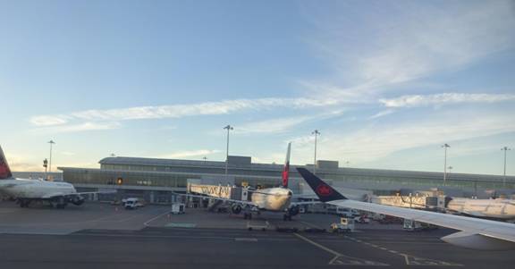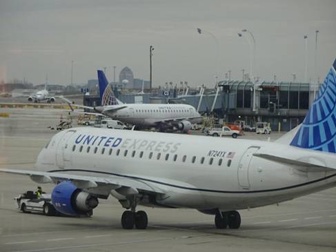 I saw that Air Canada had given me an aisle seat. However I found an Air Canada information desk near my gate and was able to get my seat changed to a window for no additional cost. I logged into the airport’s Wi-Fi and went online. I also photographed a few United Airlines planes.