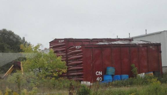 of Temagami, we passed a scrap yard with an old boxcar in it.