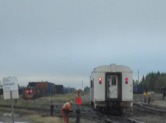 Northlander departed on time. As we passed the shop, I filmed the equipment