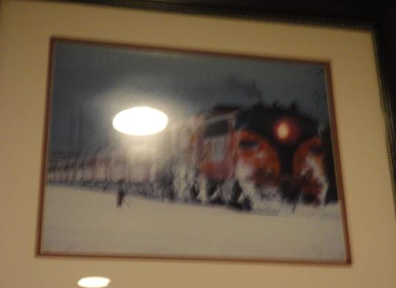 bought dinner from the lounge car. The train stopped at Englehart. While we