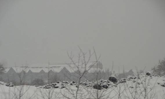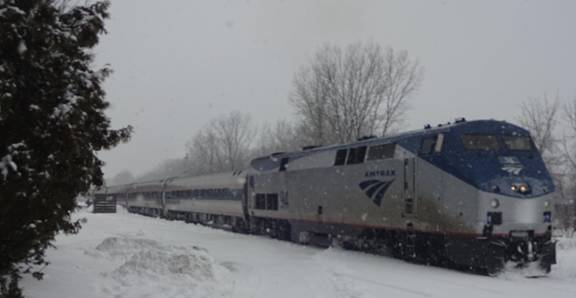 began to snow. I was told we’d get some snow today. The train stopped at