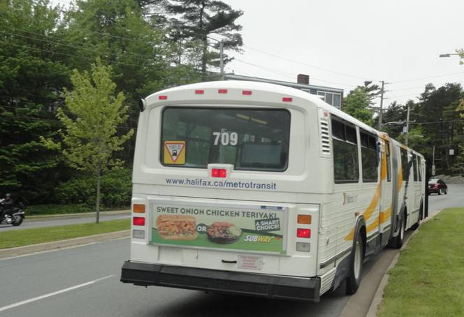 I opted to go to Subway, but I saw there was an Arby's a little further so I decided to go there. I walked over and bought lunch to go. I then walked back to the bus which had been moved I photographed 709.